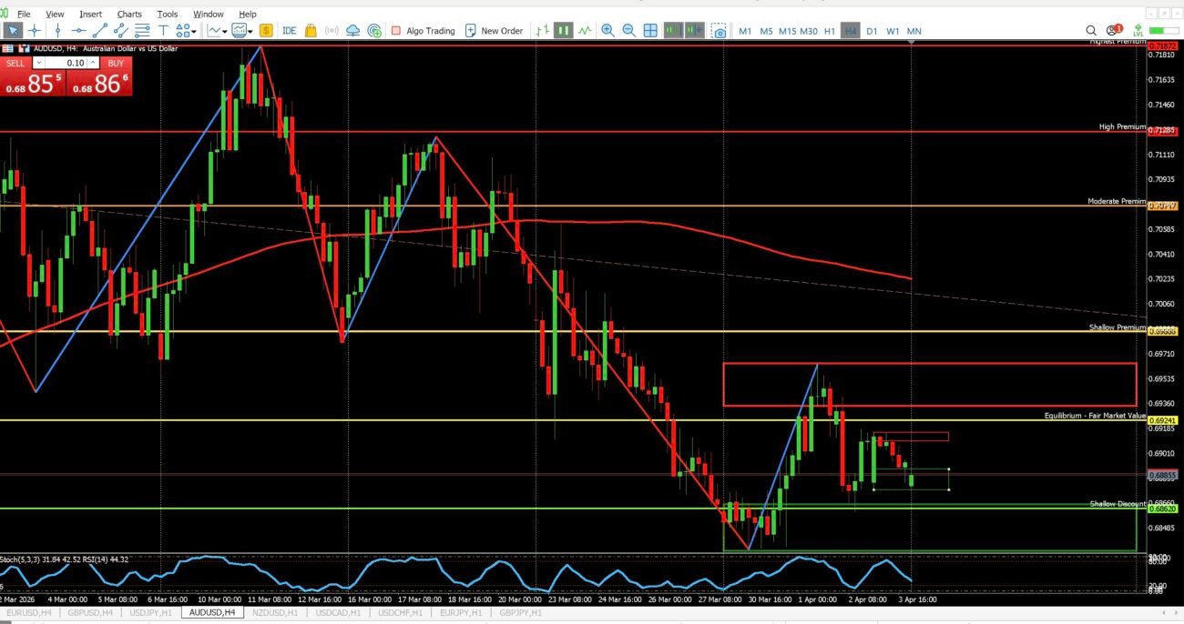 On the 4 hour chart, price is clearly sitting in a premium zone. Not only that, it is trading just beneath last week’s sell zone, which is a major area of interest.